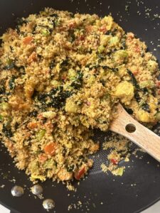 After prepping the fonio and moringa, the salad can be assembled by just adding everything together.